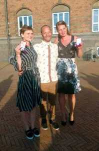 En stolt anlægsgartnermester, Jonas Olsen fra Stenbroens Træpleje & Anlæg foran Københavns Rådhus flankeret af sine sølvmedaljevindereDen gamle nedturskultur
