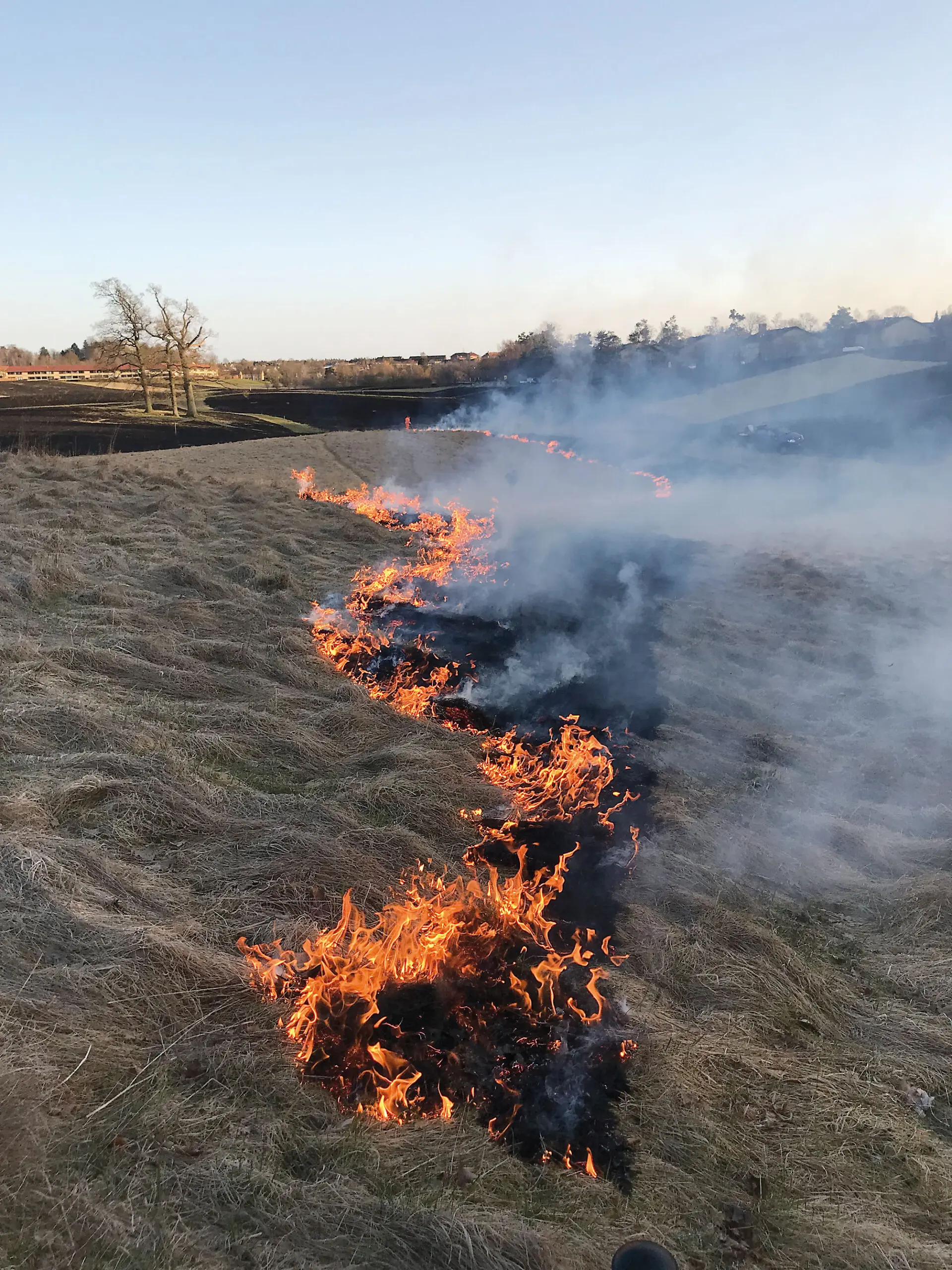 En modvindsbrand er langsom, men går i dybden. En medvindsbrand er mere overfladisk, men hurtig og kan udvikle sig eksplosivt hvis man ikke er klar. Typisk vælges medvindsbrand i åbne arealer og modvindsbrand i byområder for ik­ke at risikere noget. I alle tilfælde lader man ilden springe over nogle steder ved hjælp af daskere og vand for at få en mosa­ik af brænd­te og ubrændte felter. Den efterladte aske og blotlagte sorte jord er godt for jordrugende bier og andre insekter. Godt for biodiversiteten For biodiversi­te­ten har metoden givet gode resultater, for­klare­de Galby. Efter afbrænding er der f.eks. observeret truede som­merfuglear­ter fordi deres værtsplanter – bl.a. almindelig syre og rødknæ – er fremmet af branden. Efter branden ser man også meget vikke, perikon og vejbred og stor knopurt. Og græsset fylder mindre og præges mere af blide græsser som fløjlsgræs og gulaks. Ellers vil ur­tesam­mensætnin­gen i fraværet af det grove græs afgøres af jord­bunden. At bedømme effekten forudsætter at man har en basismåling – baseline – som man er nødt til at have selv om det koster. Efter 3-5 år kan man se om det har givet resultater som Galby understregede. Og er der resultater, er det vejen til flere midler. Man skal ikke registrere alt, men de vigtigste parametre så man har en idé om at det gavner. Til afbrændingens ulemper hører opvækst af eg der kan  modstå ilden. Er der for man­ge, må de graves op. Der er og­så risiko for at dyr som padder, markfirben og salamandre kan dø i ilden. Derfor skal man gå uden om vand­huller, men alle metoder har tab. Ifølge Galby skal afbrænding ikke stå alene, men kombineres med flere metoder som høslæt og brak, alt sammen for at optimere bio­diver­siteten: “Vi efterligner naturen og har derfor mange forskelli­ge plejemetoder der igen skaber man­ge forskellige refugier til mange arter.”