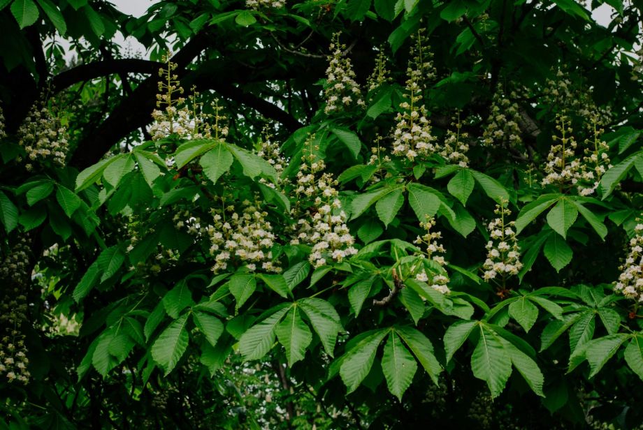 Hestekastanje (Aesculus Hippocastanum) har som regel hvide blomster, men de findes også med røde blomster. Foto: Moon Moons