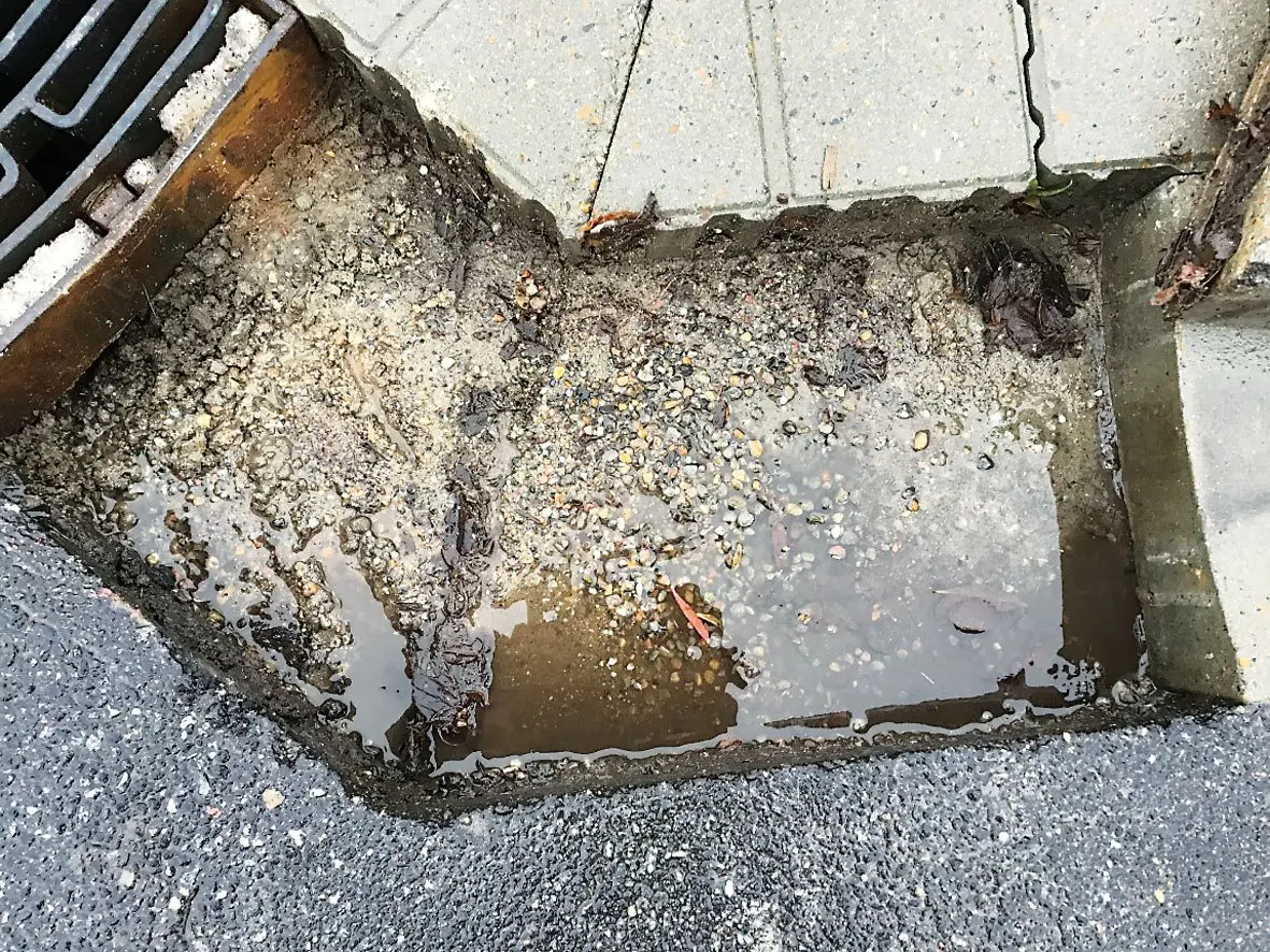 Vandrenden vil få tilledt vand både via afretningslaget under den tilstødende belægning og via fugerne i selve vandrenden. Det var tydeligt at se ved optagning af de beskadigede vandrender som man ser på billedet herover.