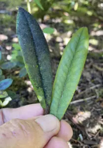 Angreb på andre arterRododendronblade med og uden sodskimmel.