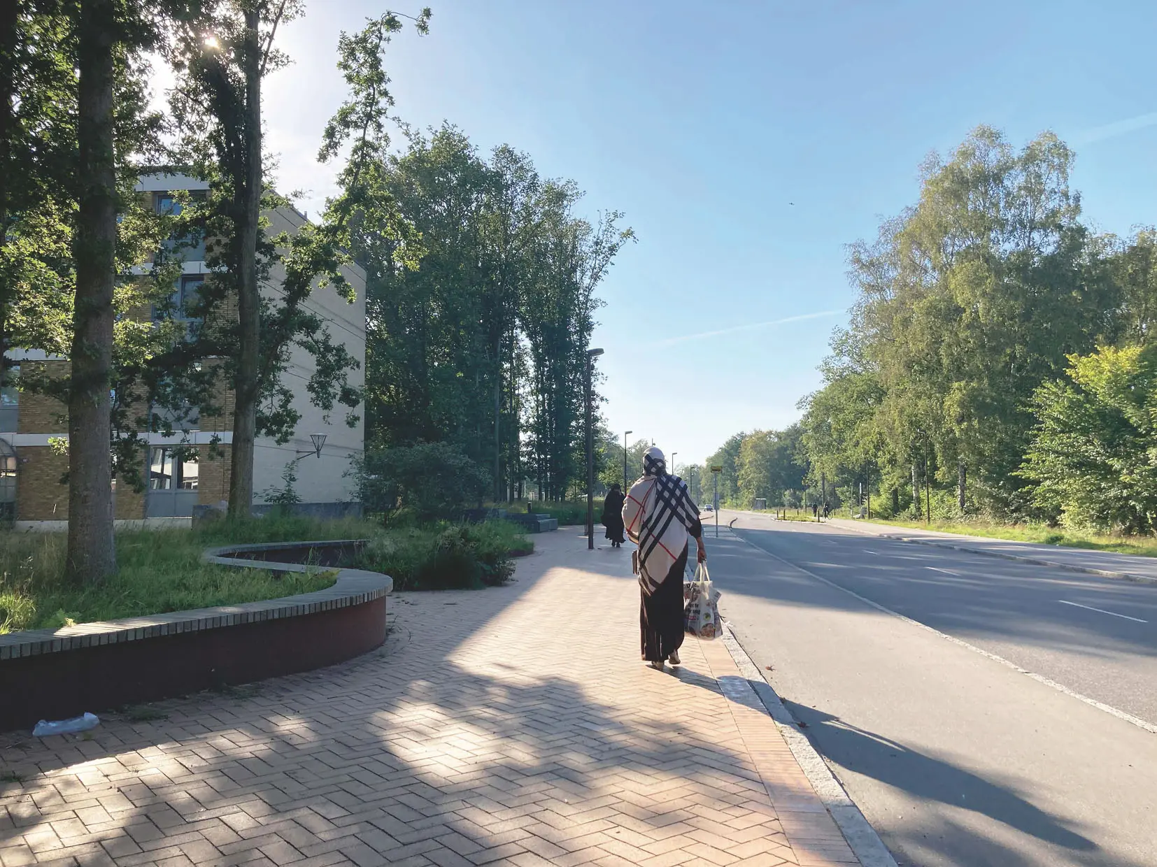 Vollsmose i Odense. En bygade med fornyet beplantning og klinker skaber en mere tryg og tiltalende vej til bussen. Susanne Renée Grunkin.Vollsmose