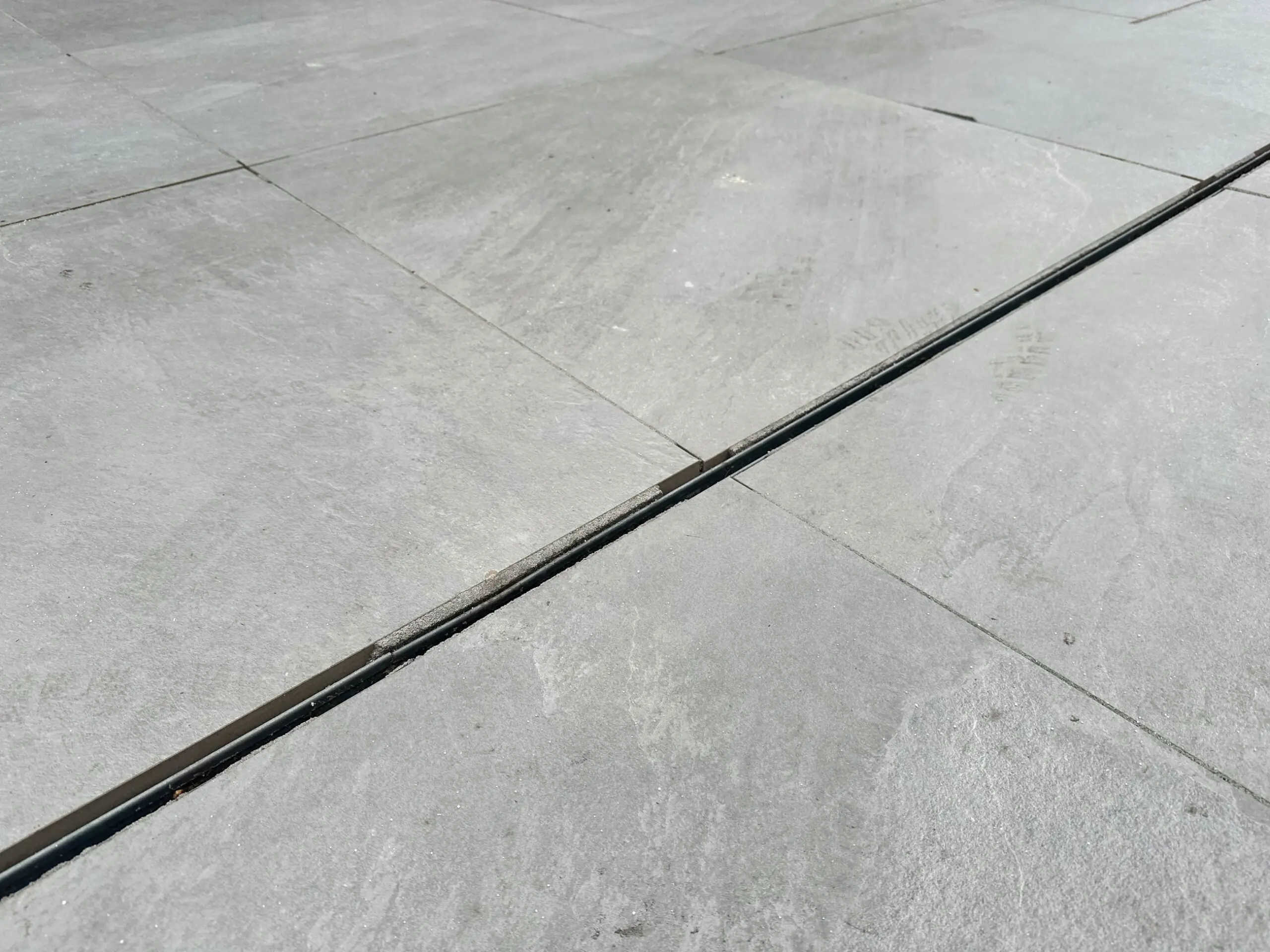 I den aktuelle sag havde et anlægsgartnerfirma i 2023 udført en belægning i en indkørsel med 90×90 cm store keramiske fliser der er 2 cm tykke. Belægningen var efter leverandørens anvisning etableret på en traditionel bund med bærelag af stabiltgrus, et tyndt lag afretningsgrus og en fugning med en fast og permeabel epoxyfuge fra Lithomix. Valg af fuge skete på møde med deltagelse af bygherre, dennes rådgiver, anlægsgartnerfirmaet og leverandøren af fugematerialet. Belægningen var lagt med beskedne 10‰ fald hvor ejeren helst ville have et helt vandret areal.