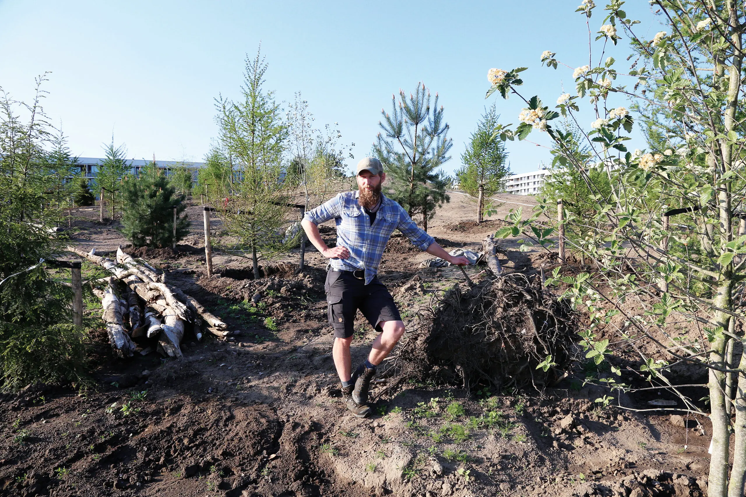 Gellerupparken i Aarhus er et af de nye byfornyelsesprojekter hvor flere fyr optræder på den alsidige planteliste. Her står Søren Ebdrup Rostved, skov- og landskabsingeniør fra SLA, blandt fyr og løvtræer.