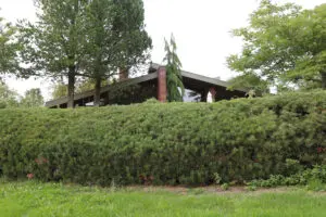 Fyr er flot som hæk både omkring offentlige bygninger, i sommerhushaver og som her i parcelhushaver.Ekstra egenskaber