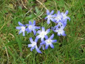 Almindelig Snepryd (Scilla forbesii) kommer tidligt og er smukke fx i græsplænen. Foto: Meneerke Bloem.