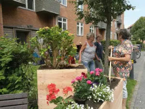 Forskerne oplevede et stort engagement,da de inddragede de ældre beboere i Tranehavegård-bebyggelsen i udviklingen af deres egne udearealer. Det er vigtigt – både når man designer til ældre og har ældre borgere i workshops – at huske at der er tale om en langt mere forskelligartet målgruppe end næsten alle andre. Foto: Sidse Carroll.