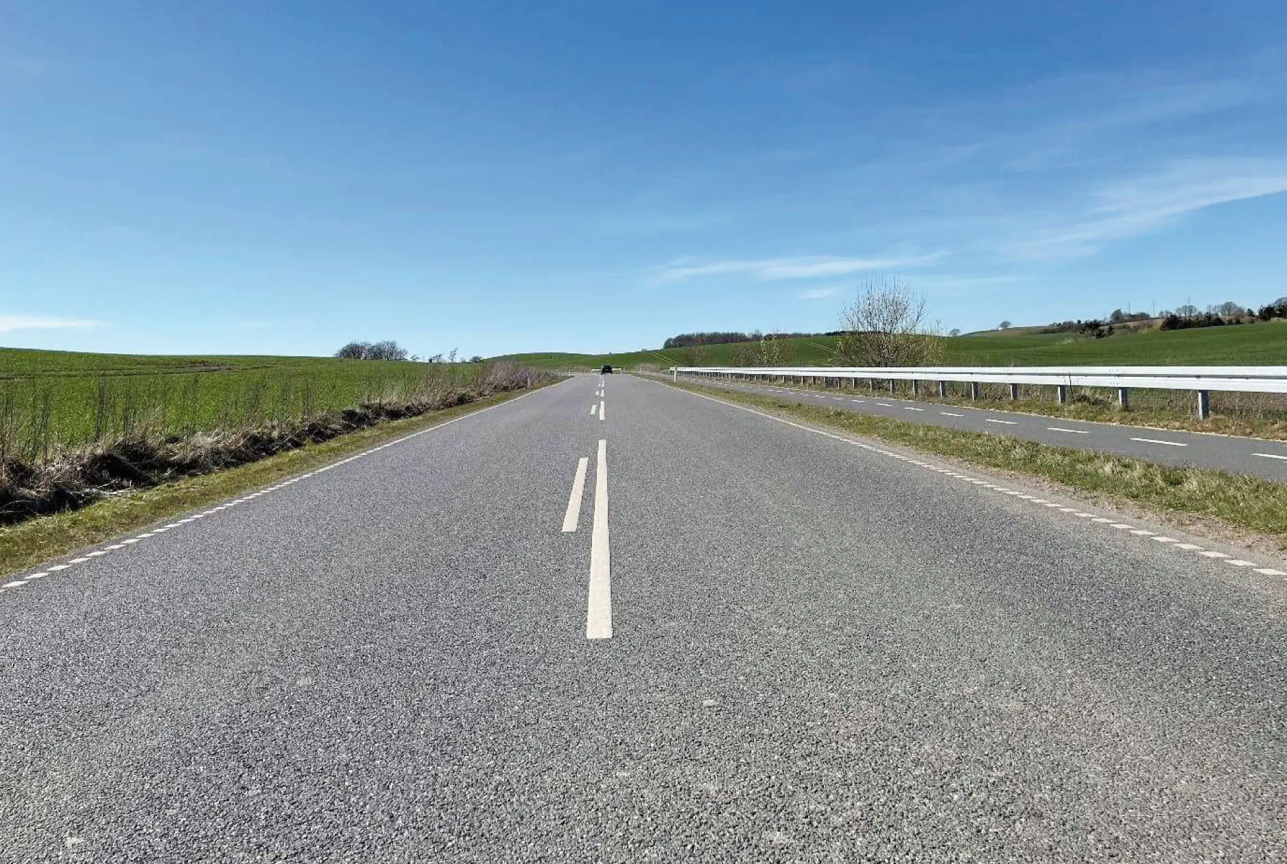 Buskmosevej i Sønderjylland anlagt i 2020 med kalkstabiliseret jord som bundsikring. Den ser stadig fin ud. Foto: Caroline Hejlesen.