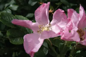Søstrene ’Therese Bugnet’ og ’Louise Bugnet’, to gode eksempler på velfungerende rugosahybrider til haver og parker. Meget få hyben.