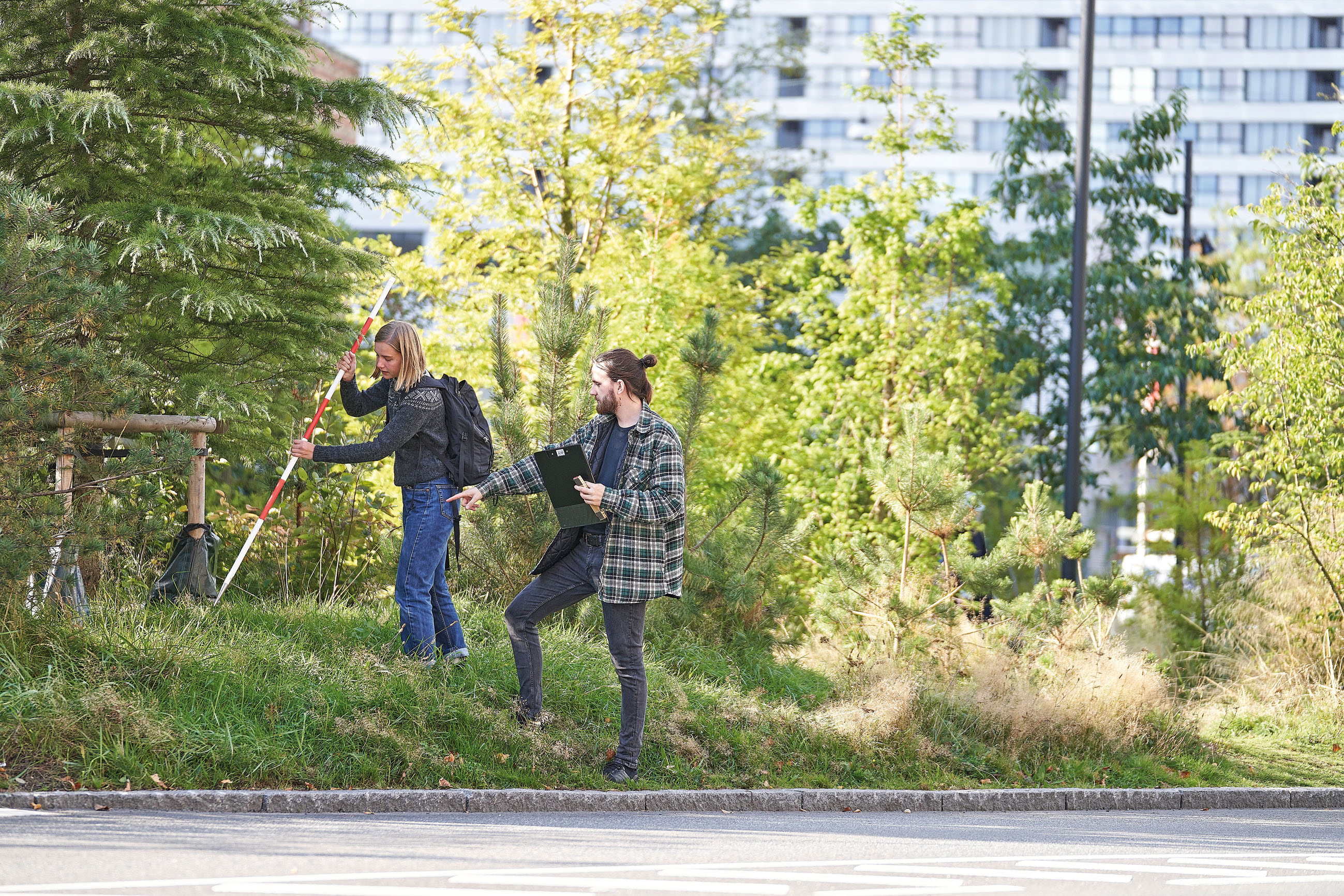 På uddannelsen til urban landskabsingeniør er det en overordnet ambition at gøre undervisningen så praksisnær som muligt. Det sker bl.a. ved at tage udgangspunkt i analyser af eksisterende plantninger, ofte ude på stedet. Foto: Jakob Helbig.
