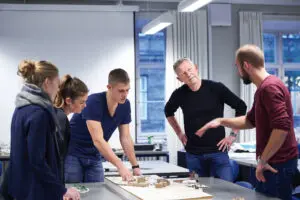 „Grundlæggende arbejder vi på at få de studerende til at beskæftige sig med planter på lige fod med alle andre elementer i et projekt,“ siger Torben Dam (nr. 2 fra højre). Han er studieleder på landskabsarkitektuddannelsen. Foto: Jakob Helbig, venligst udlånt af Københavns Universitet.