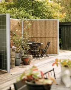 Når andre muligheder er udtømte, kan løsningen etableres inde i selve haven Hvor andre muligheder er udtømte, kan man dæm­pe trafikstøj med små lokale støjhegn inde i haven. Hvordan man gør det bedst, er beskrevet i den lille rapport ‘Go­de råd til et område i haven med mindre støj’. Den hviler på pro­jekterne Rolig Have og Rolig Have 2.0 hvor opsætninger i private haver er testet. Hegnet kan sænke støjen væsentligt, især når det danner et lille lukket rum der skyder ryg mod støjkilden. Effekten er størst nær hegnet (højst 1-2 meter fra), og når man er i siddehøjde eller lave­re. Det skal hegnet placeres efter.