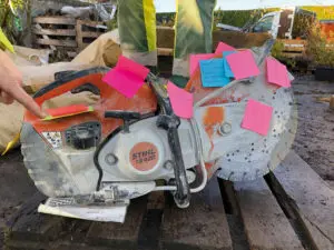 På Arbejdsmiljøkonferencen 14/11 2022 fortalte OKNygaard om deres ‘stopkampagne’. Alle de steder, hvor medarbejderne har sat klapsedler på vinkelsliberen, er den er farlig.