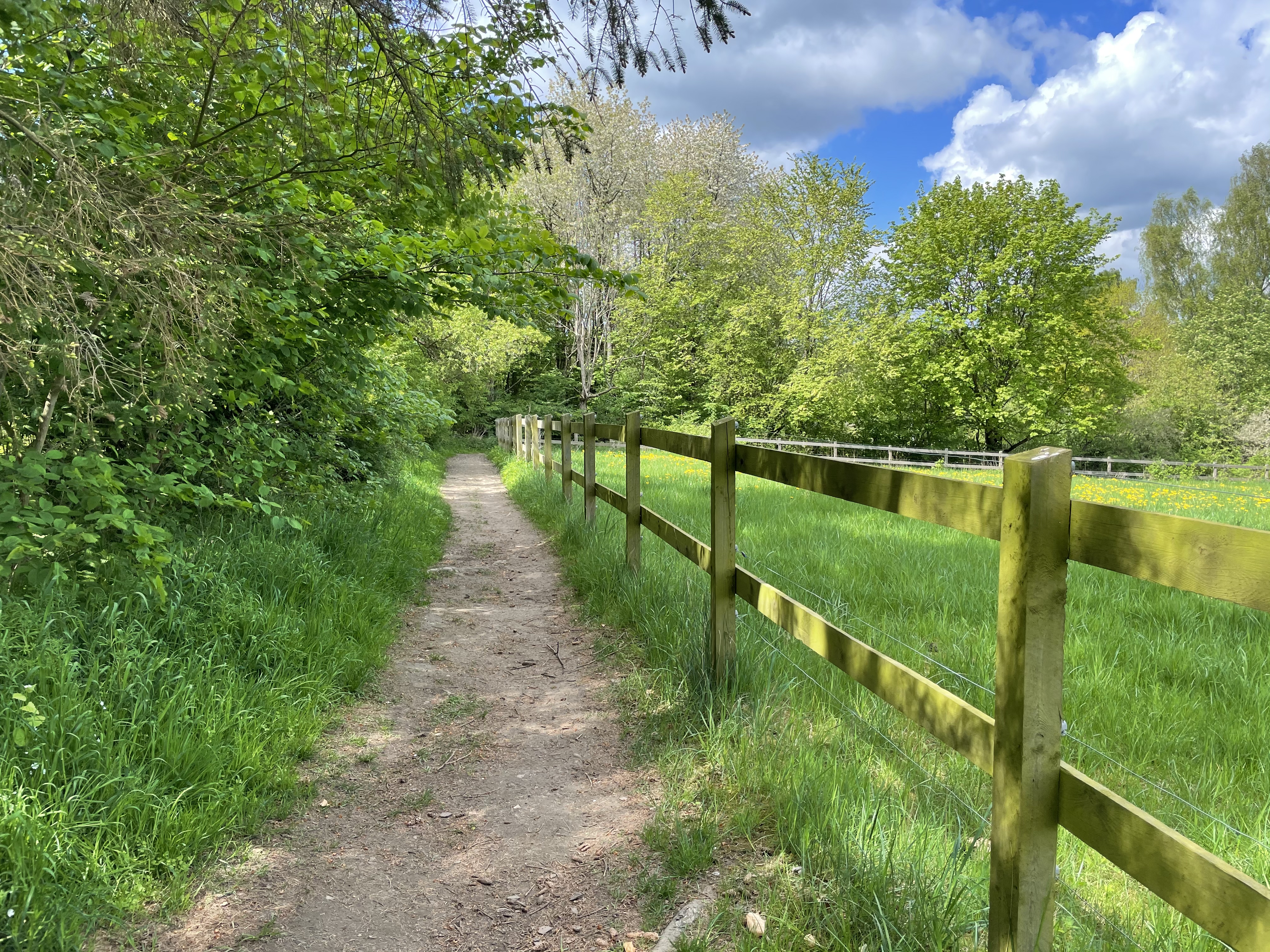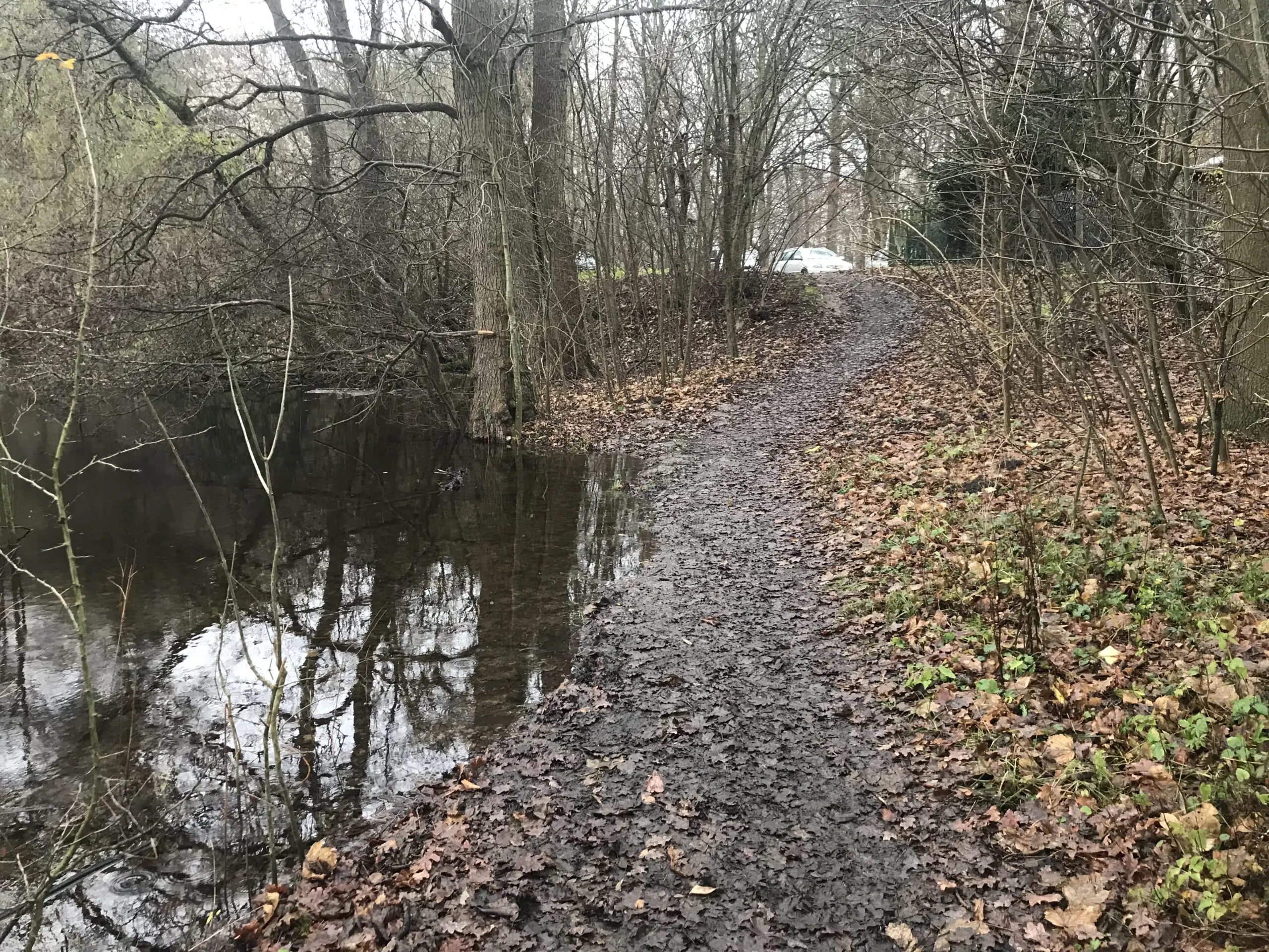 Denne sti bliver til en del af Jan Støvrings projekt med mørkt slotsgrus. Til venstre kommer indgangen til canopy walken til at blive placeret. Foto: Ulrika K. Stigsdotter.