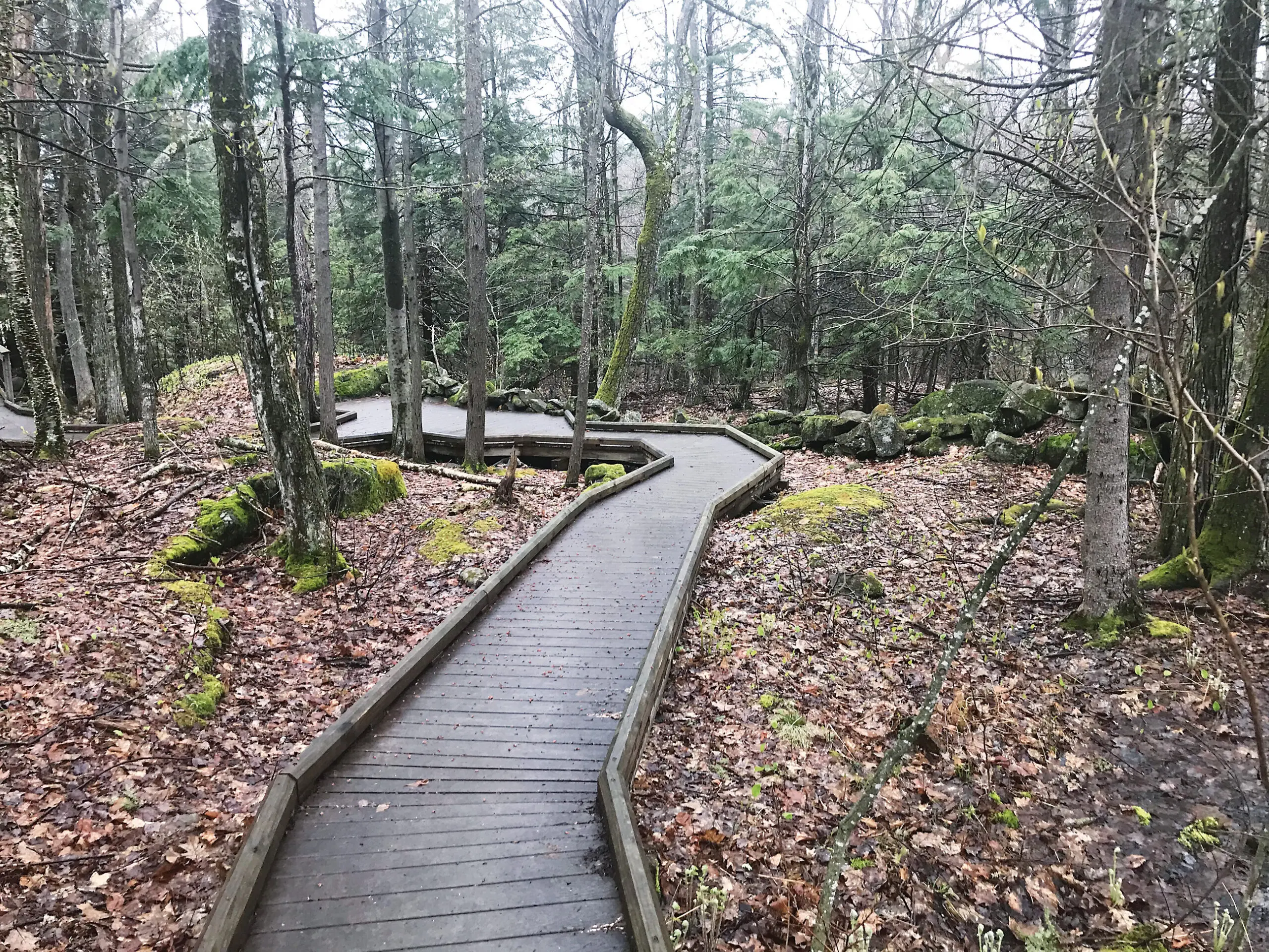 På en af mange studieture besøgte forskerne bl.a. Dutton Brook Trail i Boston hvor man har arbejdet med at lade terræn og træers placering styre træstiens retning og placering. Foto: Ulrika K. Stigsdotter.