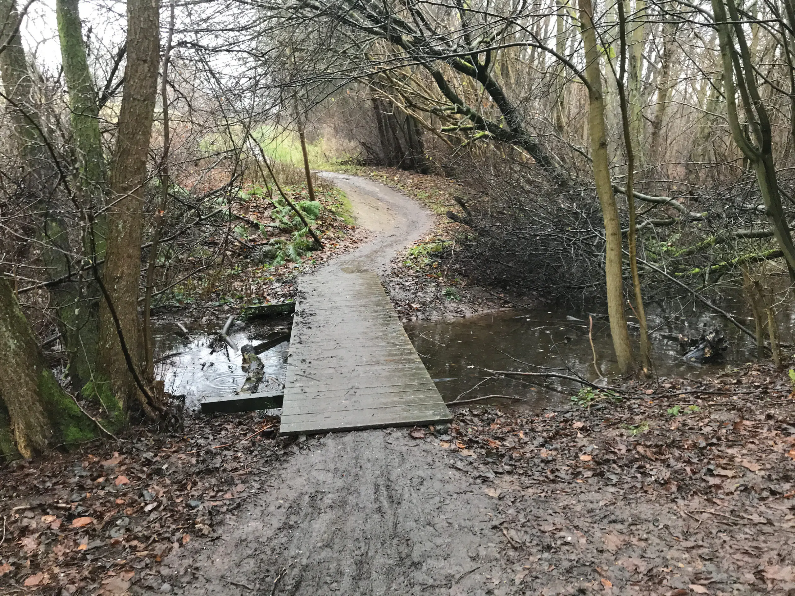 Det er vigtigt også at have fokus på driften. Manglende opmærksomhed skaber ofte barrierer så adgangen til naturen spærres for folk med f.eks. rollator eller gangstativ. Her er en eroderede overgang til broen et problem. Foto: Ulrika K. Stigsdotter.