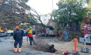 Fældning af træer i hovedstaden kan få bølgerne til at gå højt, men med det gamle træ var der ingen vej udenom. Husets ejer valgte at informere nabolaget om at den gamle kæmpe med en stammeomkreds på 360 cm ikke stod til at redde. En gaslæk fra Hofors gasledning havde bredt sig til rodzonen, og trods en kæmpe indsats over tre år med intensiv pleje, luftning af jord omkring rødderne, gødning, beskæring og vanding samt ekspertbistand fra landskabsarkitekt John Norrie var hele den ene side af træet dødt. Træet blev derfor fældet i januar.