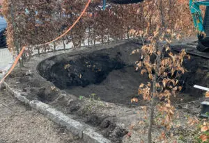 Plantehullet i forhaven var på 3 x 3 meter og 90 cm dybt.