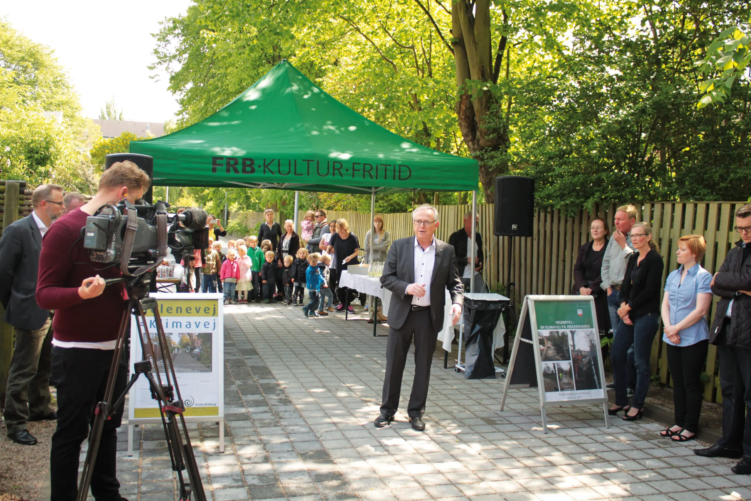 Kortlægning af potentialet for konvertering af konventionelle befæstelser til permeable er betydeligt i deloplandet ’Frederiksberg Allé og Vodroffsvej’ på Frederiksberg og formentlig også mange andre steder. Foto fra indvielsen af Helenevej, Danmarks første klimavej,19. maj 2014.Ni befæstelser evalueret