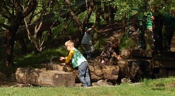 Modsat mange traditionelle legeredskaber har elementer som træstammer og store sten et væld af anvendelsesmuligheder for det kreative barn. Foto: Anne Dahl Refshauge.