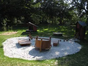Kuperet terræn og forskellige elementer – såsom træstubbe/-stammer, sten og dæk – giver børnene mulighed for selv at definere legen, hvilket er med til at inspirere børn til leg, bevægelse og brug af deres fantasi.