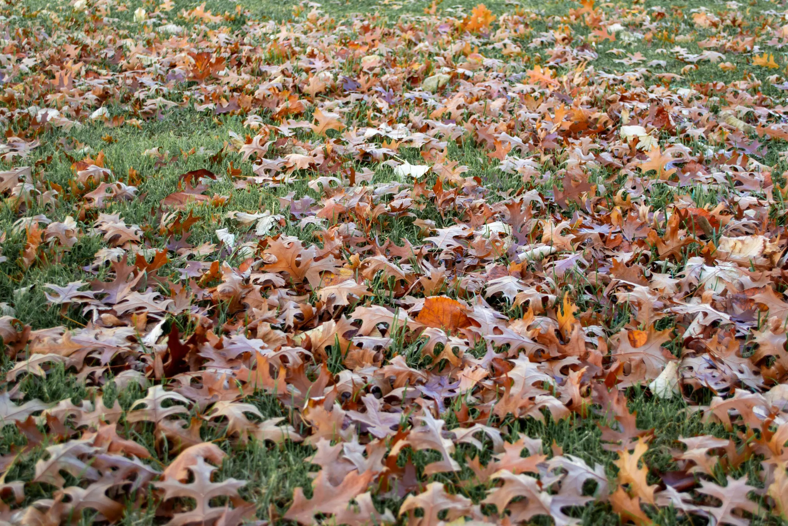Der er dejligt mange nedfaldne blade i haven i denne tid! Men hvis du lader dem ligge for længe kan de skygge græsset væk, eller gøre havegangen glat. Foto: Diogo Nunes