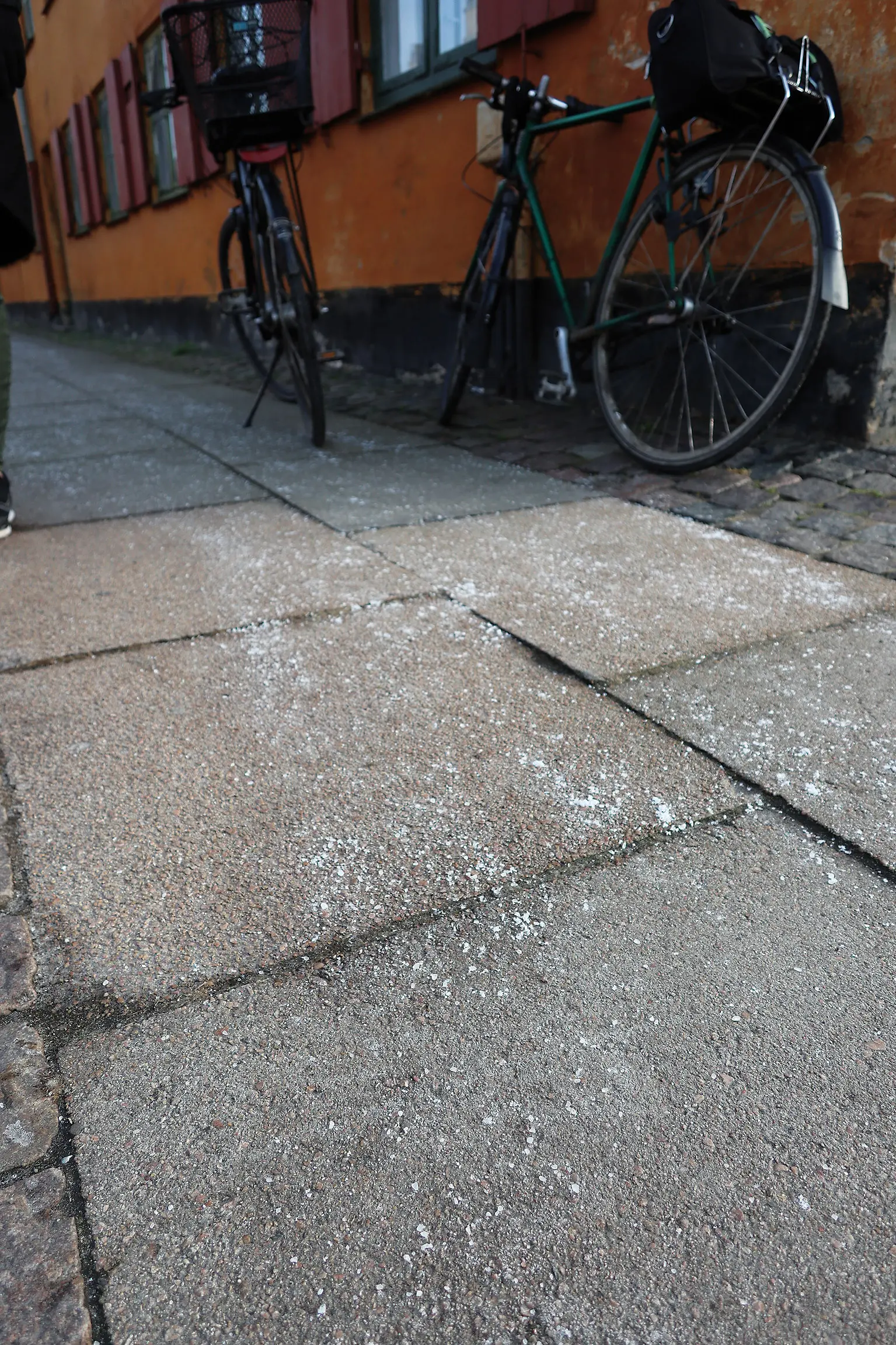 Tørsalt spredt ud på fortovet søndag eftermiddag 12. februar 2022.