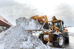 Snevagten A/S i gang med snerydningen hos ATP i Vordingborg. Det ser voldsomt ud, men i kommunen har man blot fået 124 mm nedbør denne vinter i forhold til et gennemsnit på 149 mm i vintrene fra 2006-2015. Foto: Jens Nilausen/fotostil.dk.